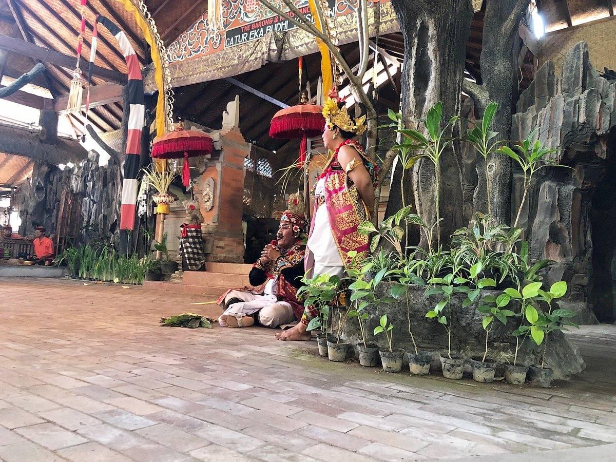 The Barong and Kris Dance performances range between 50 and an hour, and at the conclusion of the performance, fans can take photos onstage with the actors wearing their theatrical best and the gamelan orchestra. Every day, between 9:30 and 10:30 in the morning, dances are performed. IDR 80,000 to 100,000 ($6 to $8) per person ranges for tickets. We wouldn't suggest it for children due to Kris self-stabbing scenes and occasionally obscene "Balinese humor" innuendo by the monkeys.