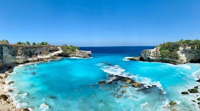 A turquoise bay will be waiting for you once you descend the stairs to one of the best beaches in Bali, Blue Lagoon. At the cliff's edge, there are warungs where you may hire loungers, enjoy a cold coconut and beer, and unwind while taking in views of Blue Lagoon.