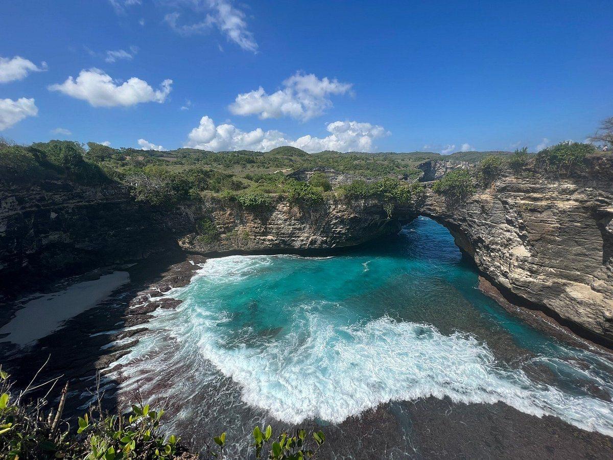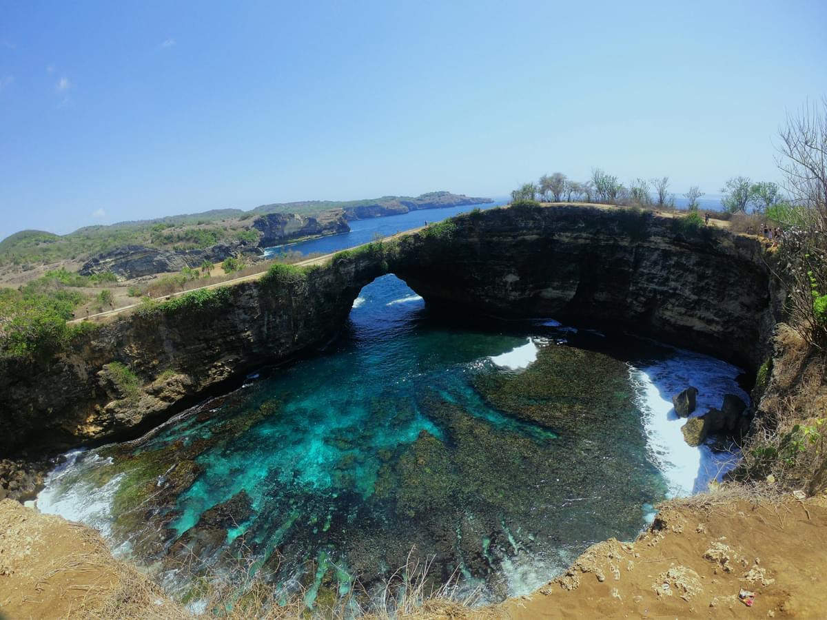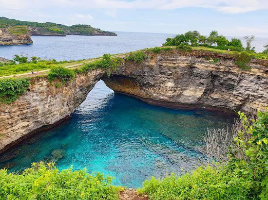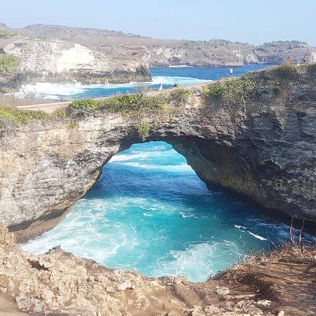 1. Unique natural rock arch over clear turquoise waters, also known as Pasih Uug or Broken Beach.