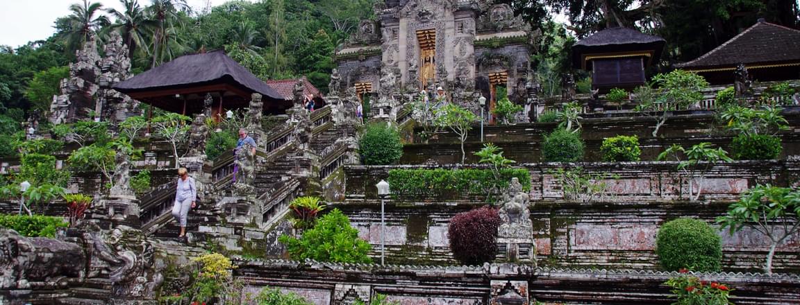 Kehen Temple is an old Hindu temple complex with distinctive architectural elements. The temple courtyard is accessible by road and 38 flights of steps. The staircases and center vestibule are adorned with carved sandstone statues of legendary animals and Balinese folklore figures. The temple's walls are also decorated with porcelain plates, a nod to the local Balinese kingdom's historical link with China. Indeed, Kenhen is one of the most beautiful temples to visit in Bali, and you can include it in your Bali trip from India.