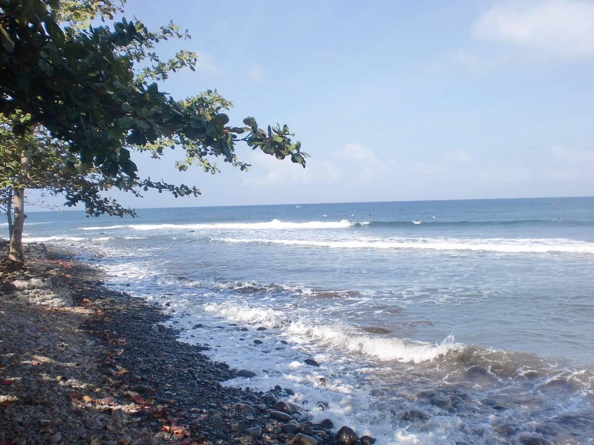 The new Bombora Medewi Wave Lodge will be on your right as you reach the end of this road, and Medewi Beach Cottages is located on your left (looking to sea). Almost 20–30 meters to the left or right of this big parking area is where you should step outside. Keep an eye on the tides because the high tide is best for surfing and typically enhances the beauty of the beach. There are rocks—lots of black volcanic rocks—but again, it is simpler to navigate around these at high tide.