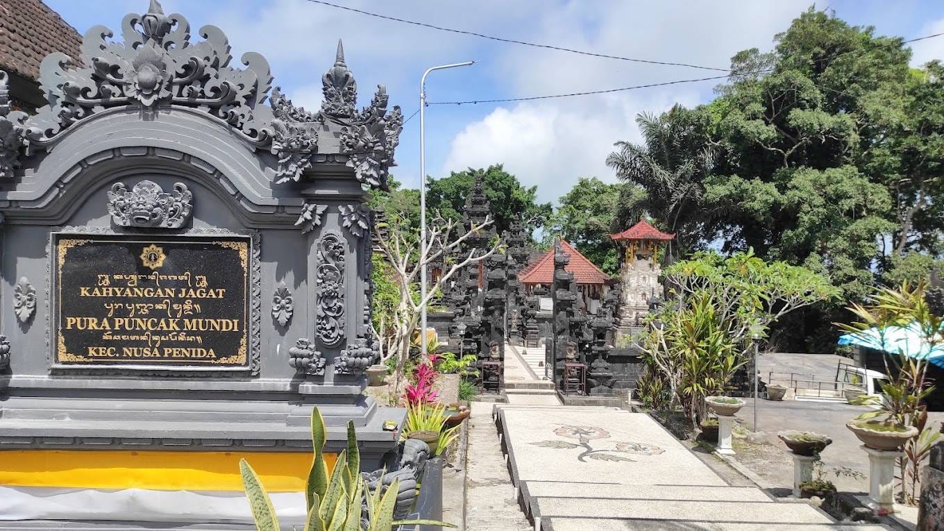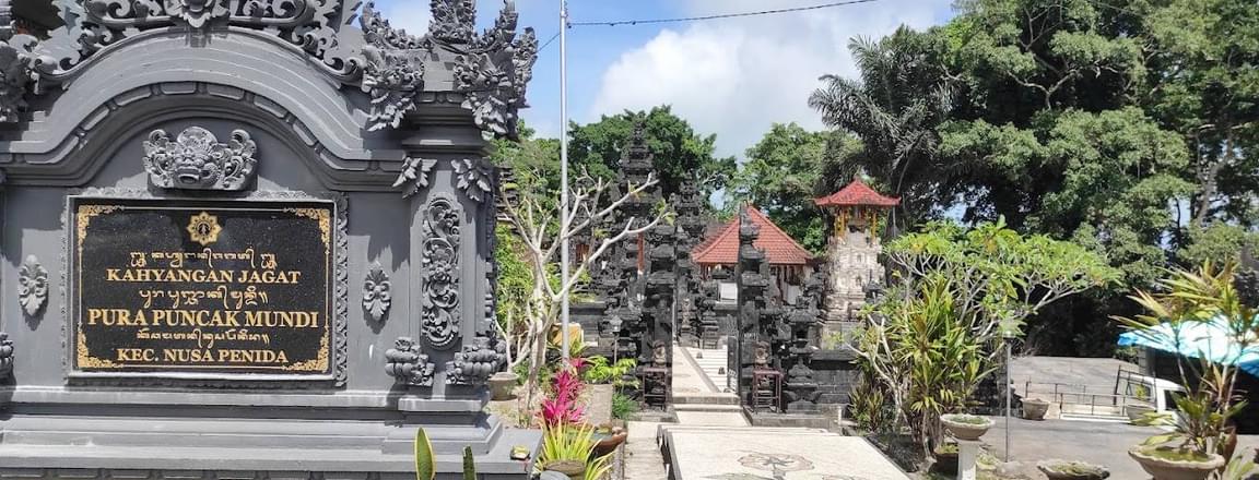 Puncak Mundi Temple is located on Mundi Hill in Klumpu Village, Nusa Penida. You can take a speed boat from Padangbai to Sampalan, Nusa Penida. Use public transportation, a bemo, or a motorcycle taxi to Puncak Mundi Temple from there. It takes approximately 30 minutes.