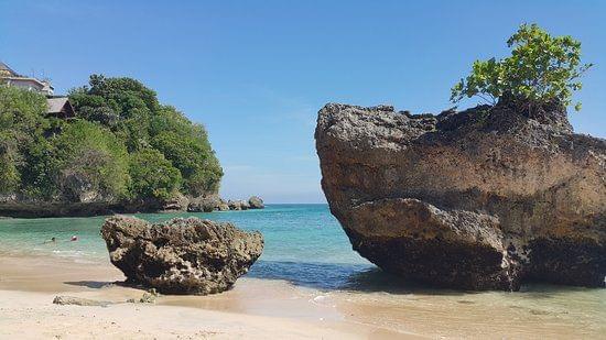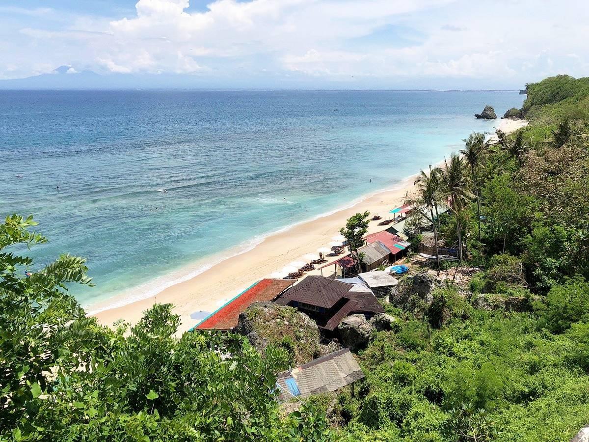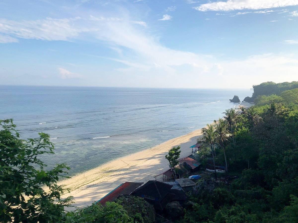 Thomas Beach is a tropical oasis nestled in one of Bali's busiest areas, the Bukit Peninsula. Yet, it is nowhere near as well-known or popular as its sister beaches. Perhaps this is why the beach's natural beauty has been preserved to this day. The traditional image of the beach is of magnificent golden sands, clear blue waves, and palms swaying against steep white cliffs.