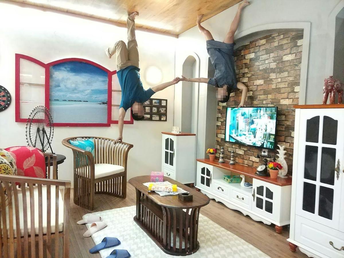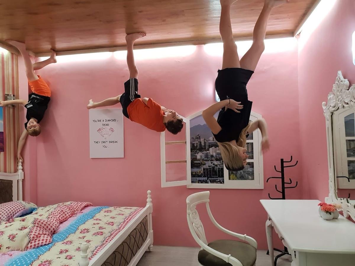 Couples who visit the fascinating upside-down world should specifically use the 3D room. They can take some great pictures with the assistance of the staff or by flawlessly posing in front of a tripod. One partner would be seated on the couch holding a cup, while the other partner would be scaling the wall while pouring tea from the teapot. This is the most typical stance in the 3D room.