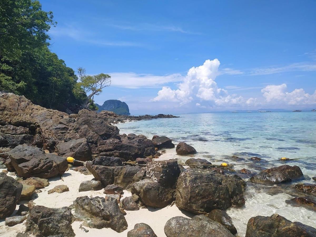 It is the second-largest island in the Phi Phi archipelago and one of the few unspoiled and inhabited ones. The island is well known for its crystal-clear waters, diving and snorkeling opportunities, and enormous limestone cliffs that are draped in lush vegetation. It is located around 1.5 kilometers off Koh Phi Phi Don's southernmost tip. Many tourist destinations, including Viking Cave, Phi Le Lagoon, Maya Bay, Loh Samah Bay, and Monkey Bay, are located in Koh Phi Phi Lee.