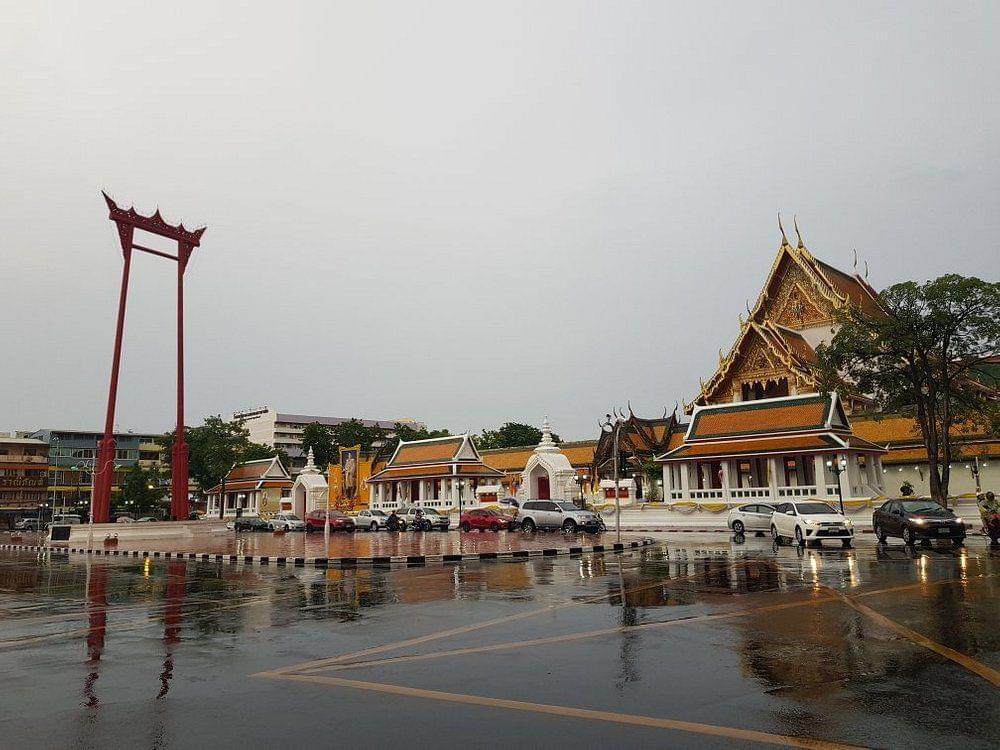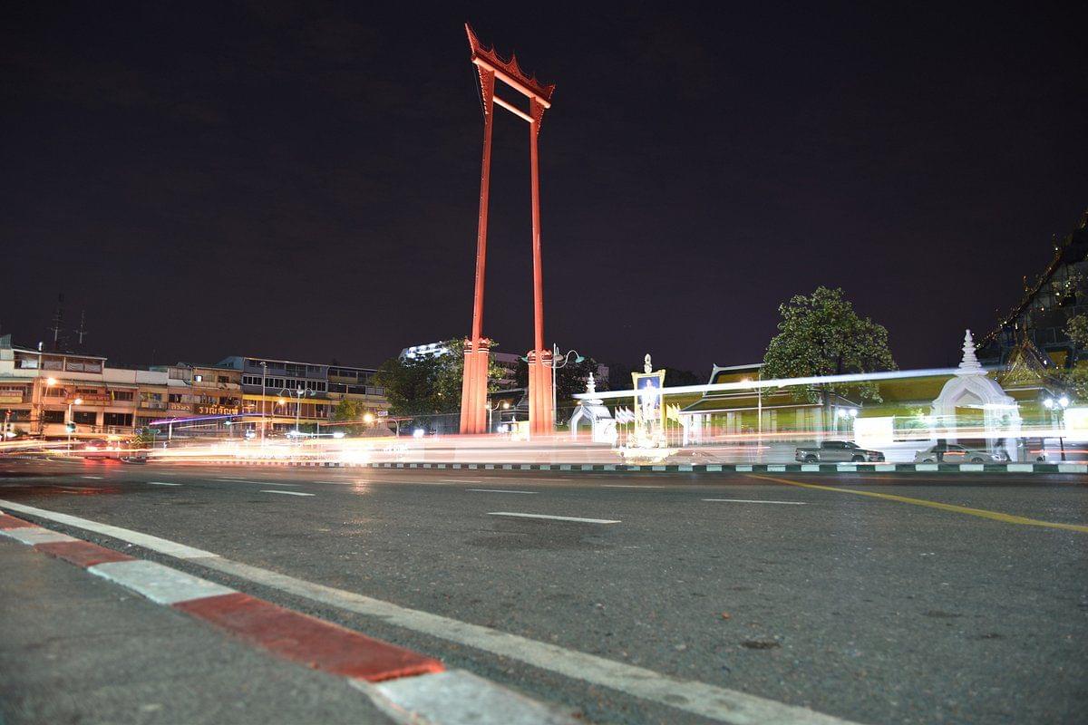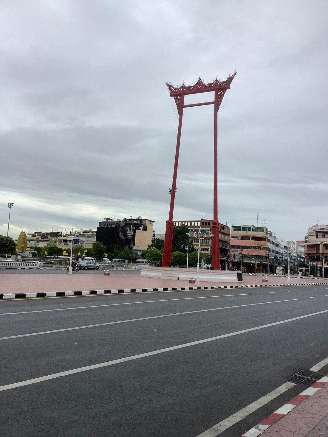 The giant swing at Bangkok is located right outside the religious Buddhist temple Wat Suthat. It is a landmark tourist attraction which is easily accessible from the main road.