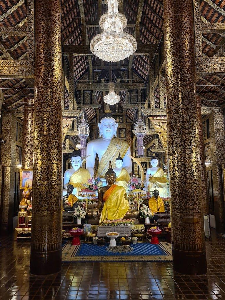 An iconic Buddhist temple adorned with intricate golden carvings and home to an impressive Buddha statue.
