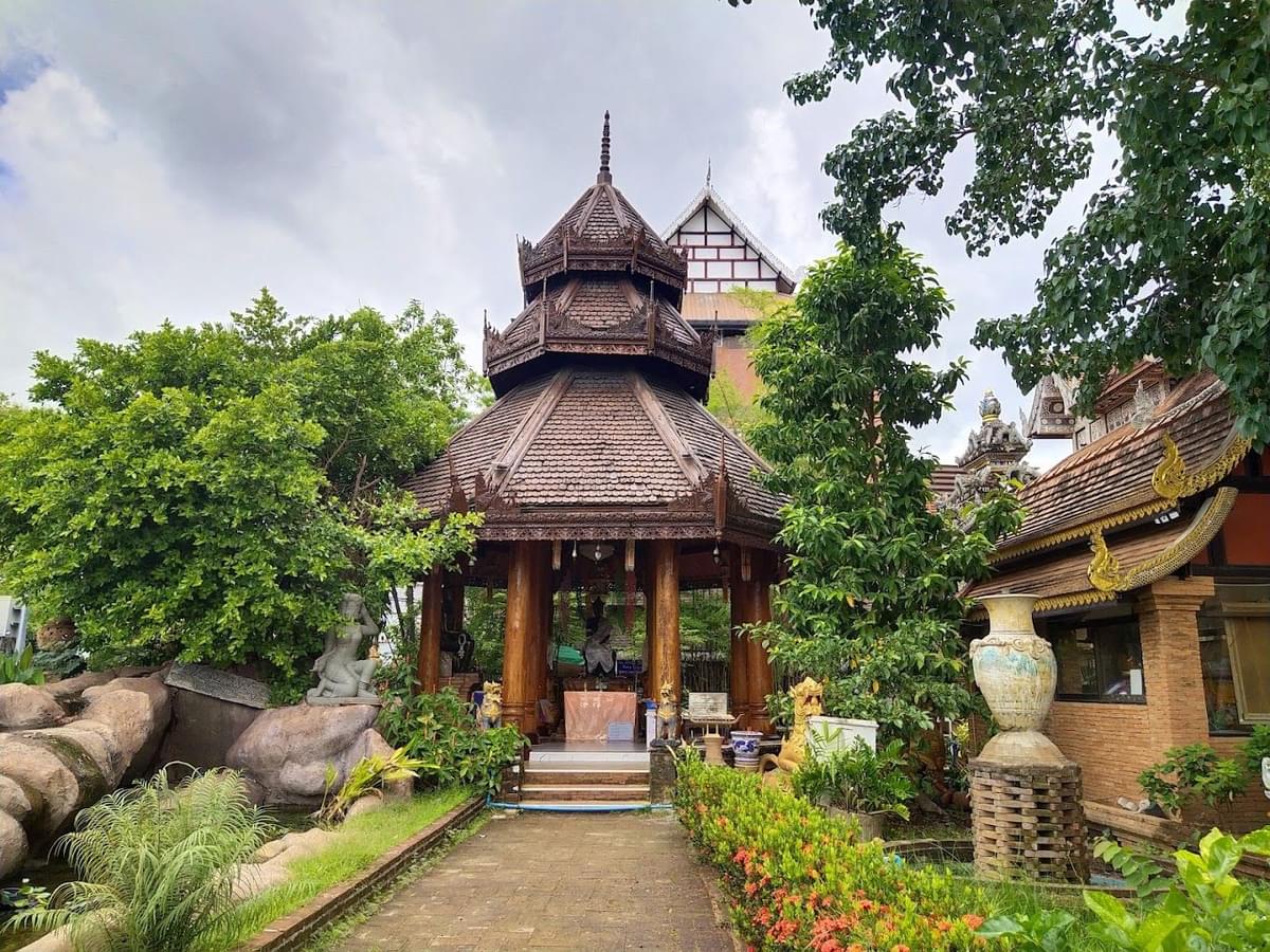 The site also houses a viharn (assembly hall) with stunning wooden carvings and detailed decorations.