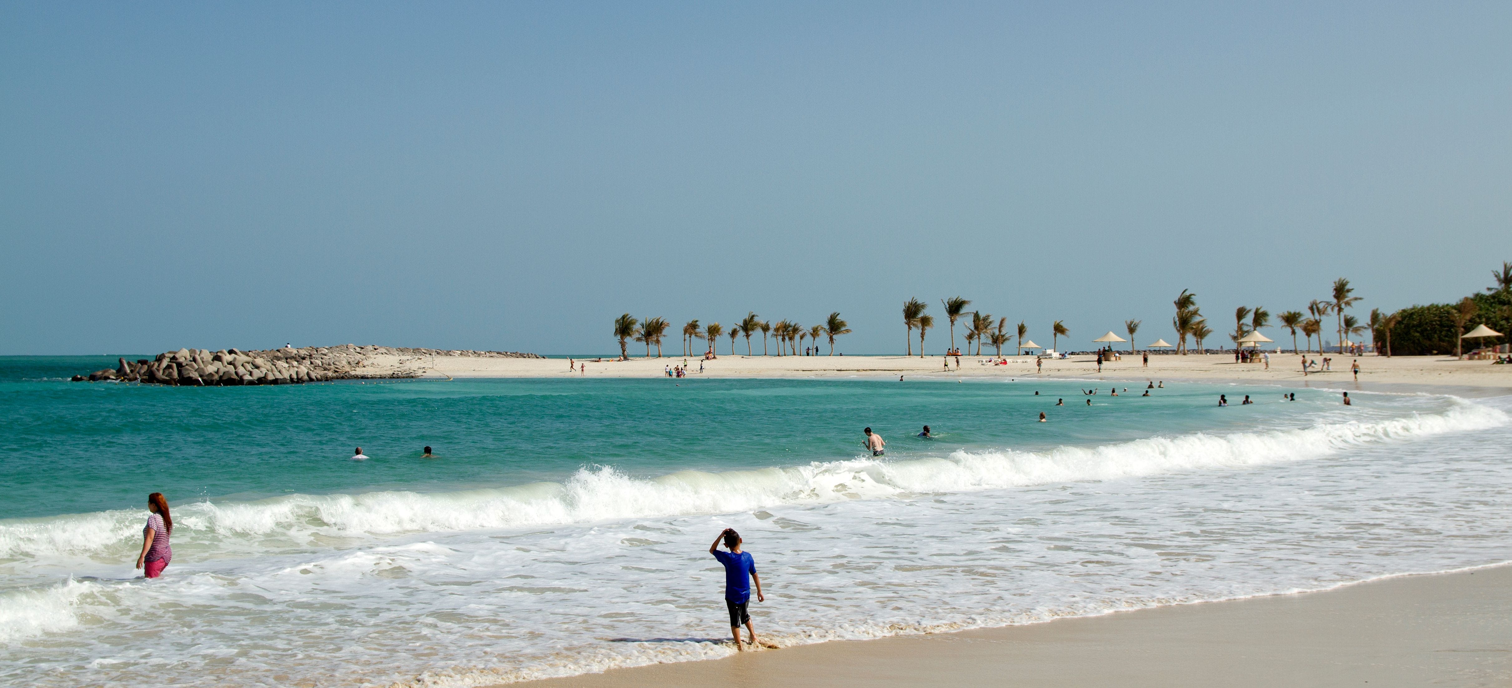 The Al Mamzar Beach Park is less of an ocean and more of a pool experience for those who like to lie back by the pool rather than wade through the sea. There are three crystal clear pools with lots of palm trees all around, and they are really good for families with little children, as the lifeguards patrol the area, and there are even some shaded areas for relaxing.