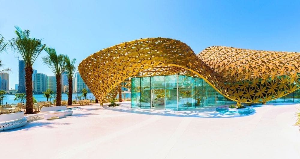 The island is spread over an area of 45,000 square meters, and it is made to look like a peaceful oasis with gardens, sculptures, and modern installations. The Butterfly House is its main attraction and is a tropical ecosystem containing hundreds of species of butterflies that fly in a climate-controlled glass dome, one of the most fascinating views in the Emirates.