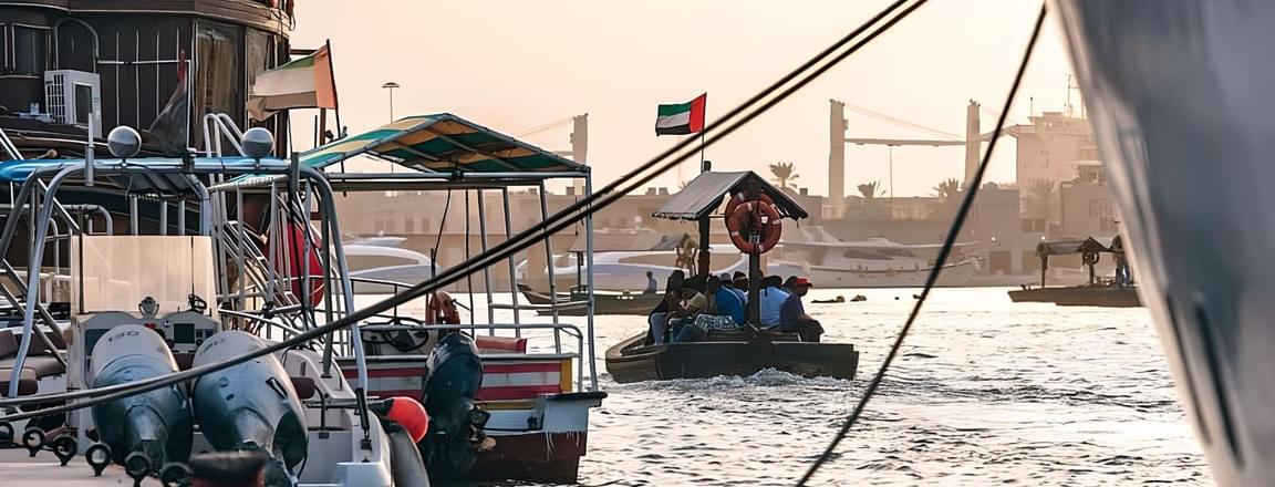 Admire the charming scene as traditional dhows sail smoothly through Dubai Creek in contrast to the contemporary skyline of the city. This visual symphony captures the peaceful coexistence of Dubai's past and present and is a photographer's dream come true.