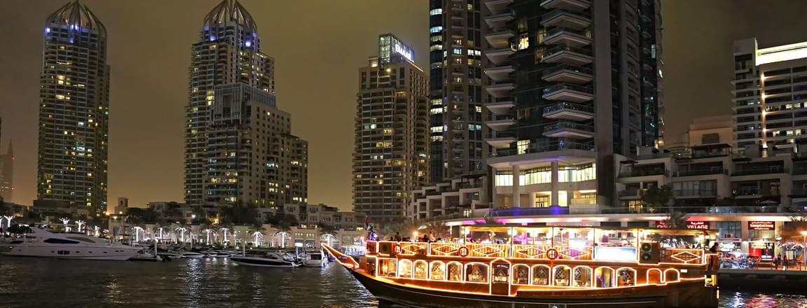 Dubai tourism is where luxury meets adventure; there is enjoyment at every turn! Indulge in the chance of discovery and adventure at the Dubai Marina Dinner Cruise. This beautiful cruise is a journey unique to this destination, making it a well sought out addition to Dubai tour packages. Prepare to be mesmerized by the endless horizons and transported to a magical realm where dreams come true and memories are etched in time. Let's get into what you could expect from this experience!