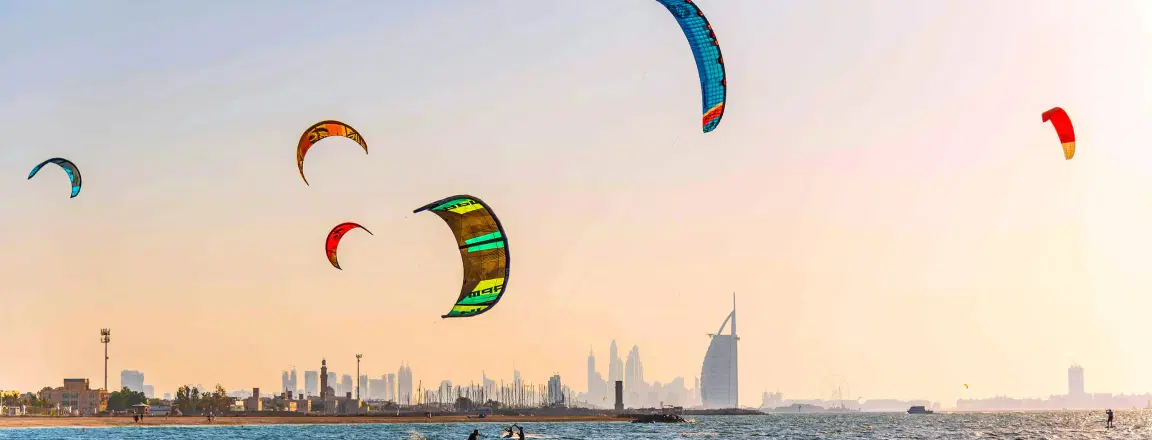 Kite beach is a very popular destination in Dubai as there are plenty of activities to do and have a fun day. This beach houses a waterpark, a small adventure park, skate park, 14-km long track for running, exciting water sports activities and so much more.
