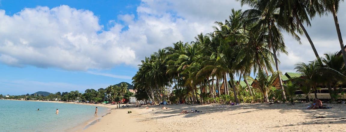 Maenam Beach stretches over 7 kilometers along a palm-fringed coastline surrounded by crystal-clear waters. Its sandy shore has a golden hue, while the clean water offers great visibility for snorkeling enthusiasts. The beach is known for being less crowded than other Koh Samui locations, making it a great choice for visitors who enjoy a laid-back atmosphere and stunning natural beauty.
