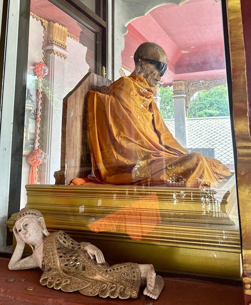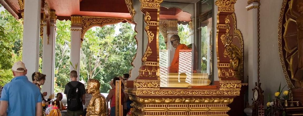 Wat Khunaram is a Buddhist temple located in the heart of Koh Samui, Thailand. It is regarded as one of the best places to visit in Koh Samui. It is best known for its mummified monk, Luang Pho Daeng, who is seated in a meditative position inside a glass case. Luang Pho Daeng passed away in 1973, and his body has remained miraculously preserved ever since. Wat Khunaram is not only a popular tourist destination, but it is also a working Buddhist temple. Visitors are welcome to explore the temple grounds and pay their respects to Luang Pho Daeng. However, it is important to be respectful of the temple and its visitors. Let’s talk a little more about Luang Pho Daeng now - Luang Pho Daeng was born in 1899 on the island of Koh Samui. He went on to be a Buddhist monk at the age of 20 and spent the rest of his life studying and practising Buddhism. He was a highly respected monk and was highly regarded for his wisdom and compassion. In the early 1970s, Luang Pho Daeng began to prepare for his death. His disciples were instructed to build a glass case and to seat him in a meditative position inside the case when he passed away. Luang Pho Daeng then entered a state of deep meditation and passed away peacefully on May 15, 1973. After Luang Pho Daeng passed away, his disciples placed his body in the glass case as he had instructed. They then began to pray and chant for nine days. On the ninth day, they opened the glass case to find that Luang Pho Daeng's body had been miraculously preserved. Luang Pho Daeng's body has remained is the same state ever since. His skin is still soft and his hair is still growing! Scientists have been unable to explain how Luang Pho Daeng's body has remained so well preserved. Some believe that it is due to his deep meditation practice, while others believe that it is a miracle. Whatever the case might be - Luang Pho Daeng's mummification is a significant event in Buddhist history. It is a reminder that the body is impermanent and that the mind is eternal. Luang Pho Daeng's mummification is also a testament to the power of meditation.