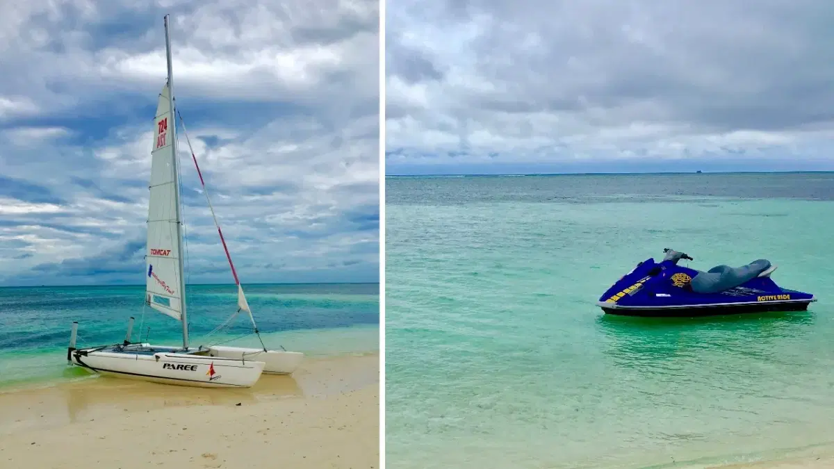 Jet skiing in Maafushi happens in open lagoon areas, which lets the riders explore the surrounding waters at high speed under guided routes.
