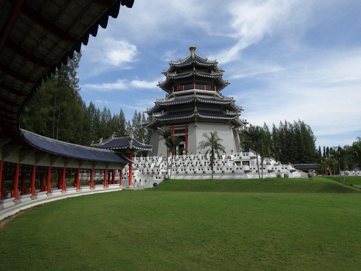 One of the main attractions at Three Kingdom Park is the pagodas. Three pagodas represent each of the three kingdoms of ancient China: Wei, Shu, and Wu. The pagodas are designed to be identical in shape and size.