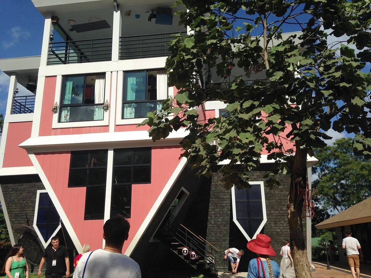 The Upside Down House first opened its doors to the public in 2014. A local Thai artist created it, drawing inspiration from a comparable German attraction for its design and construction. The anonymous artist worked with a group of carpenters and engineers for more than a year to design and build the house. The entire house is built at a 180-degree angle, with everything from the furniture to the ceiling hanging from the roof.