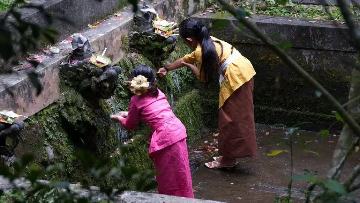 The main courtyard of the temple features sacred freshwater springs that are used for purification by worshippers before prayers. While the inner spring is reserved for priests to gather Tirtha (holy water). The sacred water is also collected by nearby farmers for use in agricultural rites.