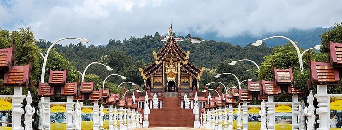 Royal Park Rajapruek is a botanical garden located in Chiang Mai, Thailand. It covers an area of 200 acres and features various themed gardens and exhibitions.