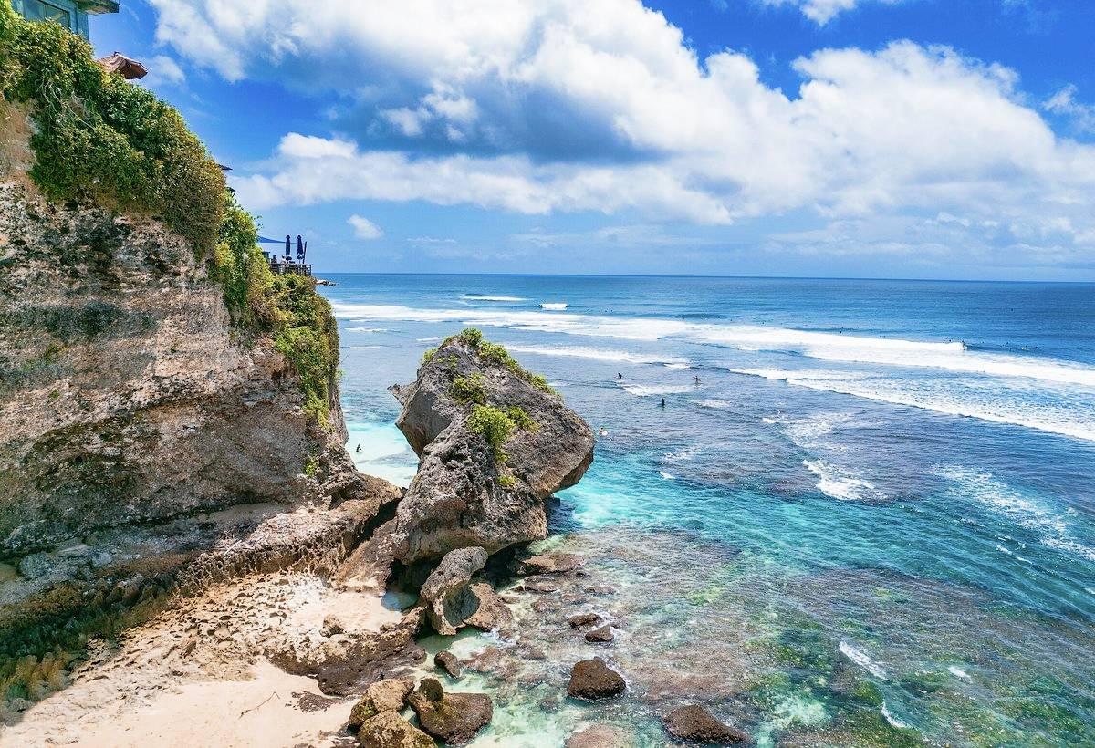 There are various rocky entrances and little caves to explore and even claim as your resting area' for the day, as well as paths leading to different sections of the beach. The best time is at low tide when there are more spaces and sandy walks, as well as tide pools where you may enjoy a relaxing dip, One of the fun things to do in Bali. Surfers come and go with the tide, and the best breakers are only a short paddle out.