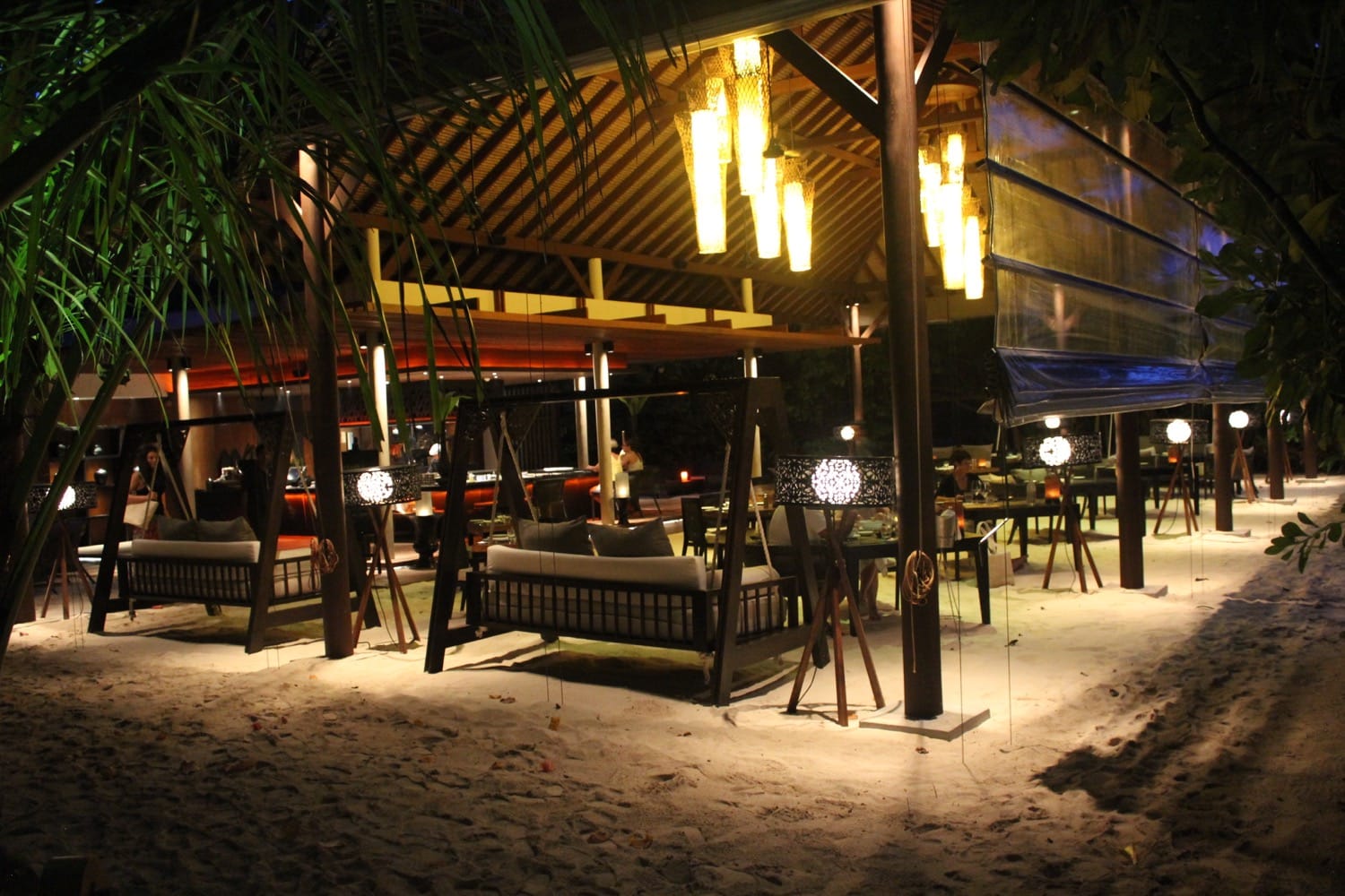 Subsix, located 6 meters underwater in Huluwalu, serves aquarium-style eating alongside contemporary European cuisine. This is a must-visit luxury seafood dining in the Maldives,2025. The restaurant’s unique design features sea urchin-inspired chandeliers and floor-to-ceiling windows showcasing the surrounding lagoon. It is one of the best places to visit in the Maldives after 11 PM as it transforms into a nightclub-style venue.