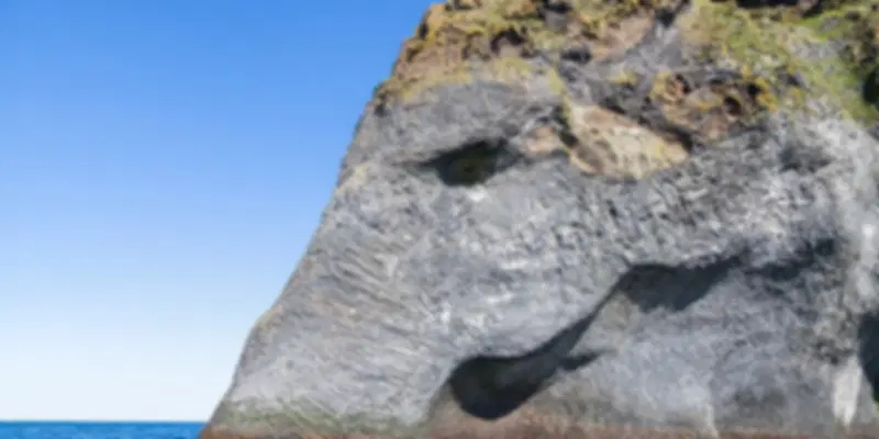 The elephant-like appearance results from natural geological processes. Volcanic basalt cooled into hexagonal columns through columnar jointing. Over thousands of years, wind, rain, and ocean waves eroded these columns, coincidentally creating a shape resembling an elephant with its trunk in the water. The basalt’s wrinkled texture enhances the resemblance to elephant skin.