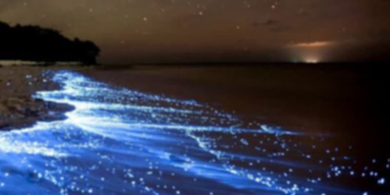 Fairy lights in water! Occurs when the shimmers of the full moon aggravates the tidal currents to wash the chemical energy off of phytoplankton buried in the Maldives shore.
