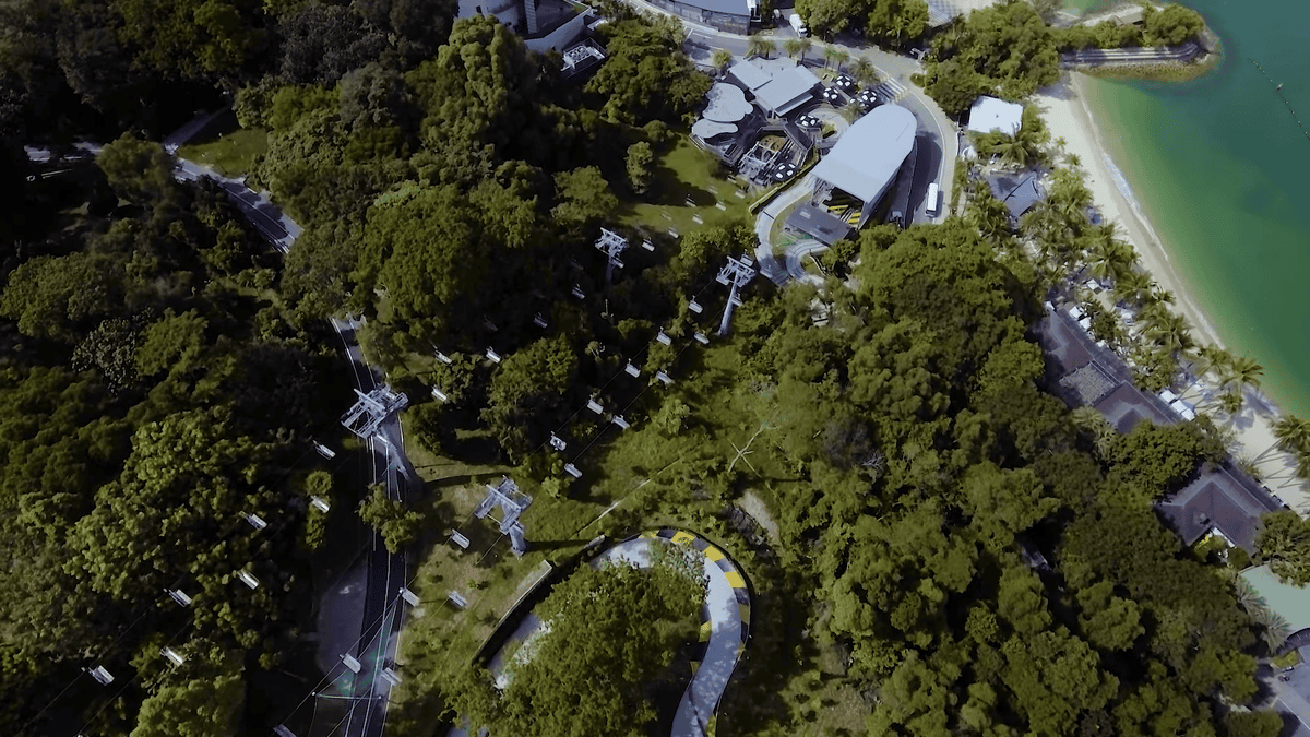 Enjoy panoramic views of Sentosa Island and the Singapore skyline while flying through the air on the Skyride. This scenic chairlift ride at Sentosa Island Skyline Luge offers a bird's eye view of the lush greenery below, offering a unique view of the island's beauty.