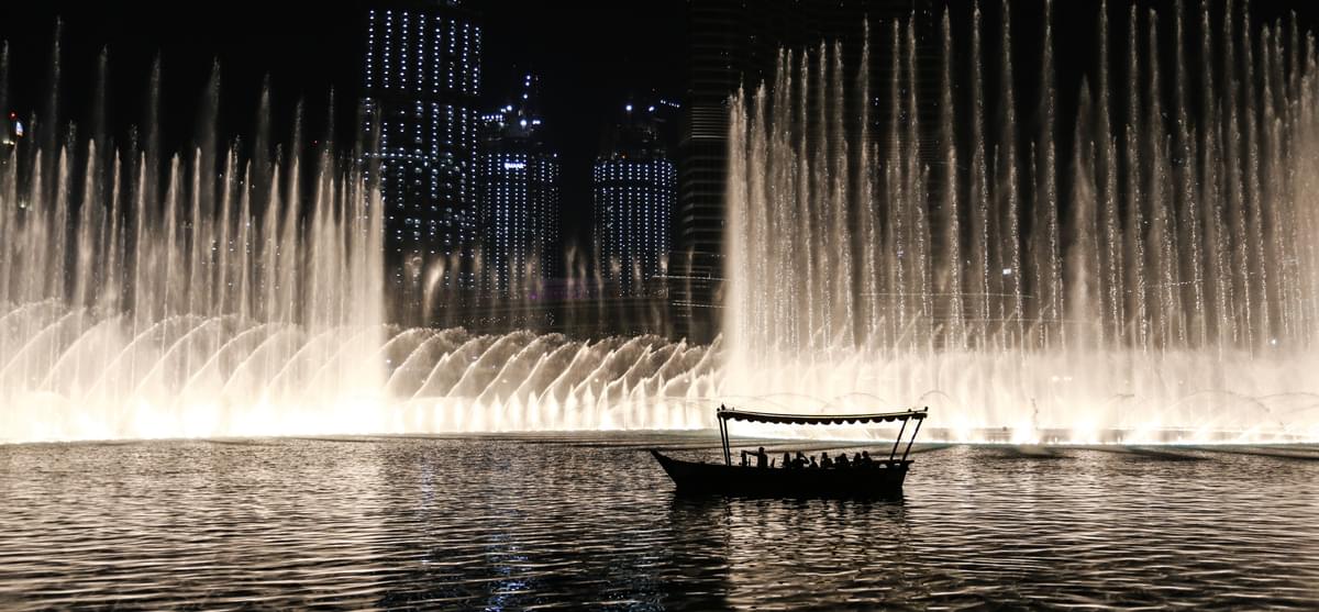 This fountain system is designed on the 12-hectare Burj Lake and stretches upto a height of 150 metres. The fountain is choreographed to music of many kinds ranging from classical Arabic to contemporary interrnational hits.