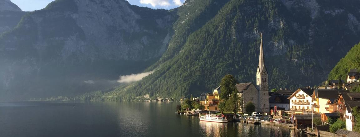 Located in Austria's mountainous Salzkammergut region, Hallstatt is a tiny village that lies hidden amidst the Alps. This little place has less than 1000 people living in it and was a salt mining community decades ago. Overlooking the scenic Lake Hallstatt, with the white Alps setting the stage. Hallstatt is one of the nine UNESCO World Heritage Sites in Austria.