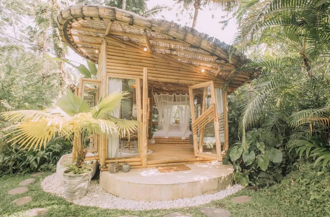 Only a five-minute walk from central Ubud, this bamboo cottage is a peaceful environmental getaway in Bali, hidden among the rice fields. This is a genuinely one-of-a-kind Bali experience thanks to the open-air basket-weave bedroom with a little loft, the modern, sophisticated bathroom, and the exterior living area. This woven home is almost entirely constructed of bamboo. Eco-tropical living at its finest is in the open air and as close to being in nature as you can get.