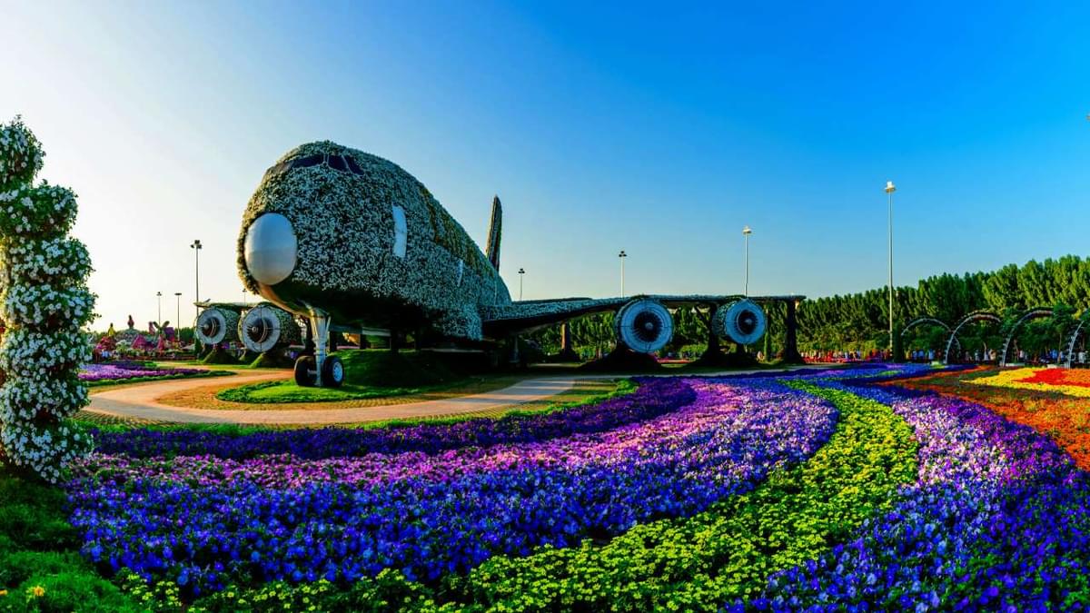 The Dubai Miracle Garden presents some iconic locations to capture stunning photos. The castle adorned with hundreds of colourful flowers, the romantic walkway with giant heart-shaped arches covered in flowers and a replica of the Emirates A380 aeroplane covered with flowers make this garden a fairytale photography setting.