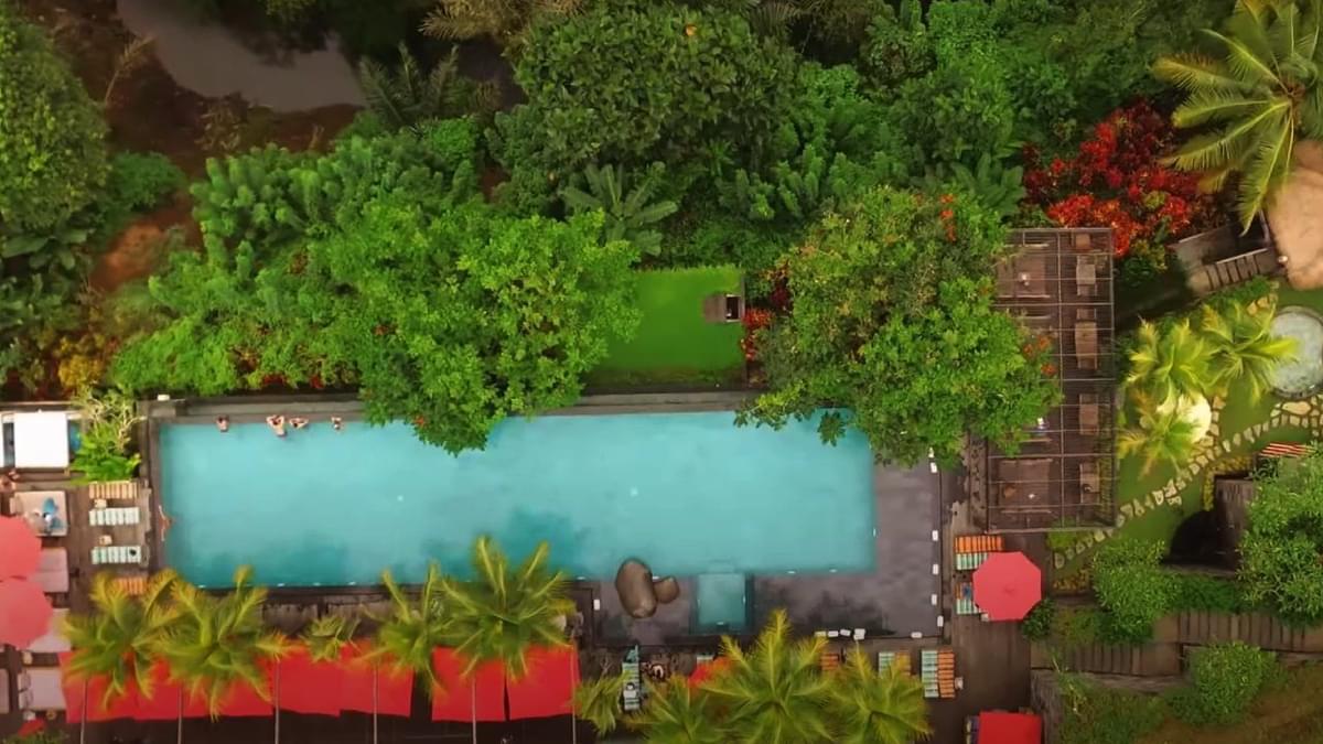 This club introduces a party atmosphere in the peaceful jungle of Ubud, featuring infinity pools with a view of the Osh River Valley.