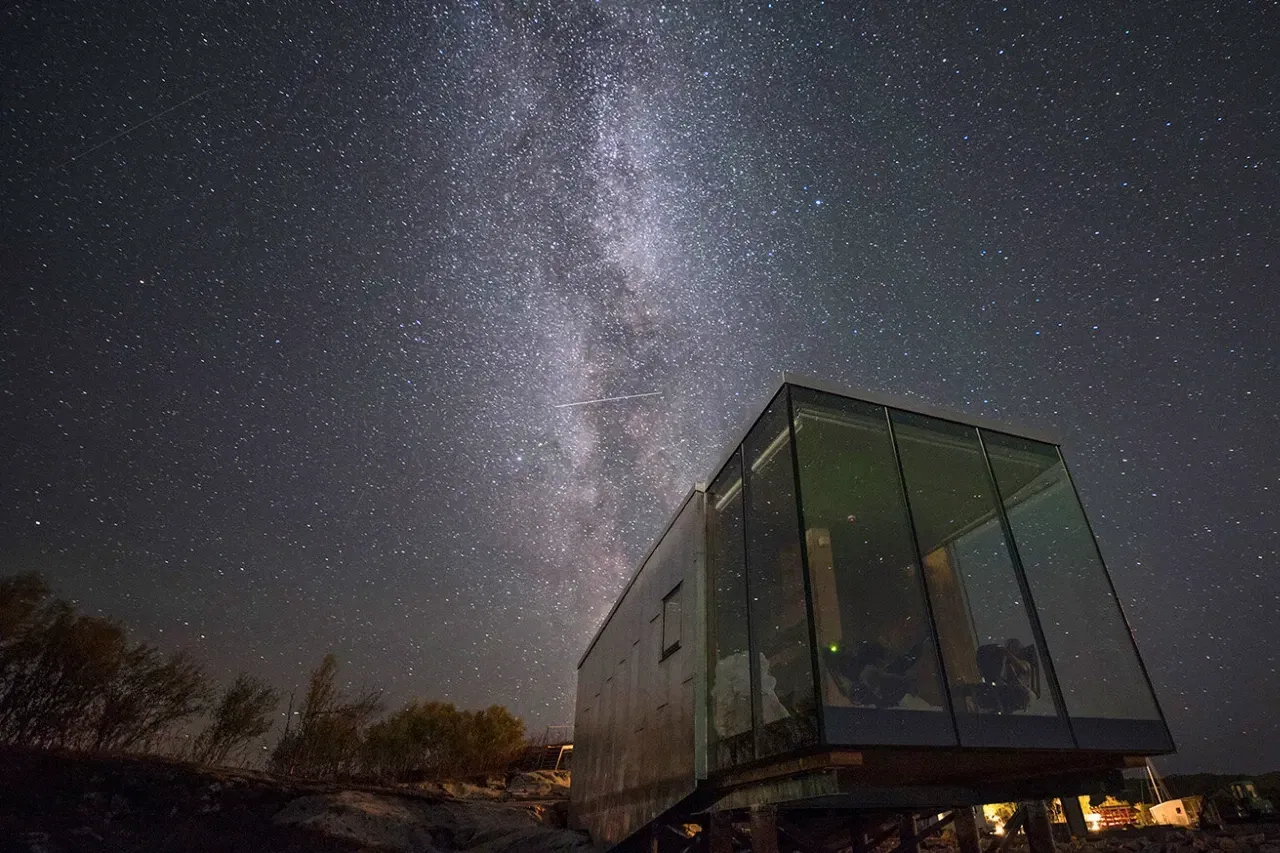 The peak season for glass-cabin stays runs from December to March, aligning with the Northern Lights and snow activity season.