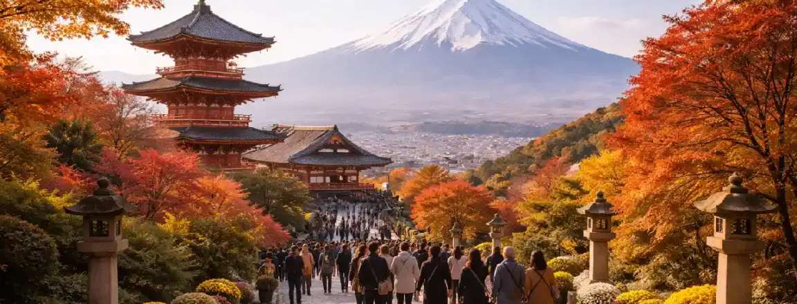 November is considered a shoulder-to-high season in Japan rather than a full peak season. While it does attract a large number of travellers due to autumn foliage (koyo), it is less crowded than the cherry blossom season in spring and more comfortable than the hot, humid summer months.