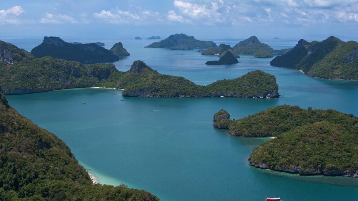 Mu Ko Ang Thong National Park is famous for 42 limestone islands, hidden lagoons, white-sand beaches, and activities like snorkelling, kayaking, and hiking in Thailand’s Gulf.